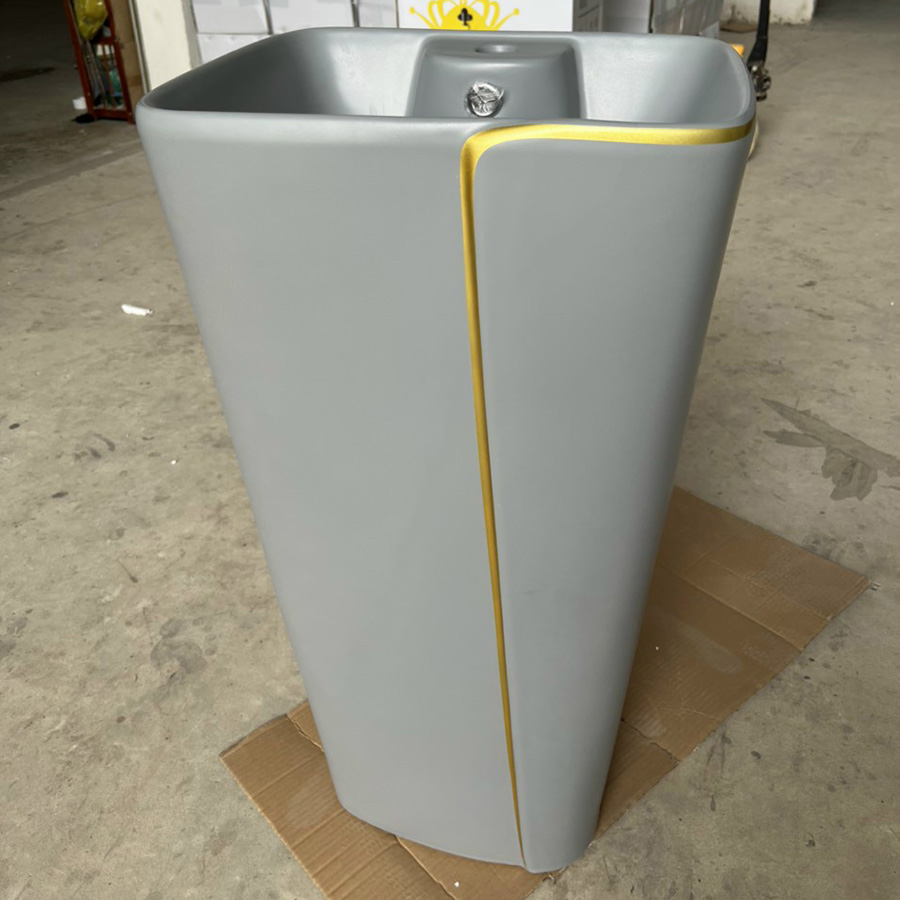 Lavabo trụ vuông đứng sàn kẻ chỉ vàng - LB79