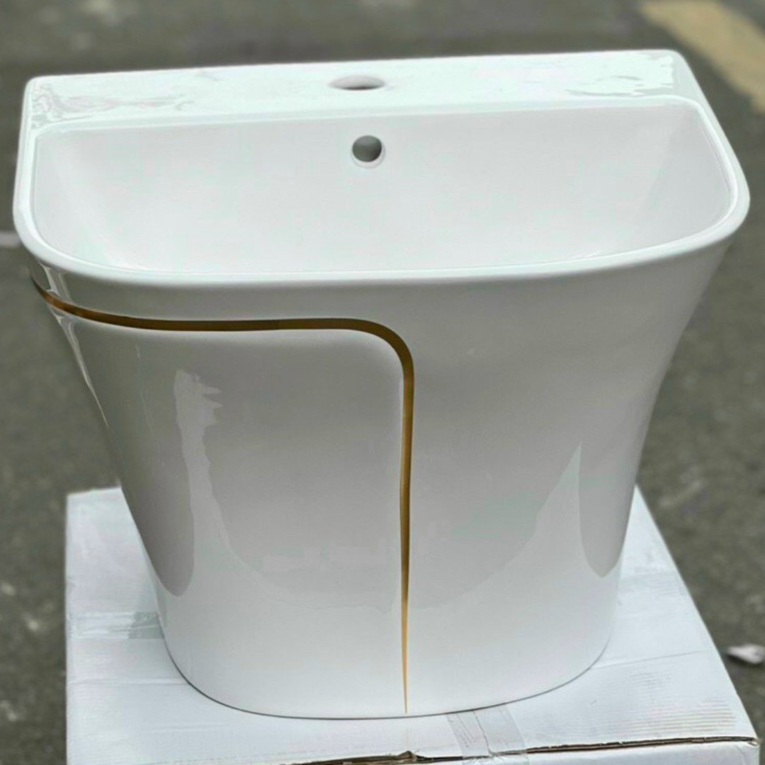 Lavabo treo tường màu trắng kẻ chỉ vàng - LB85
