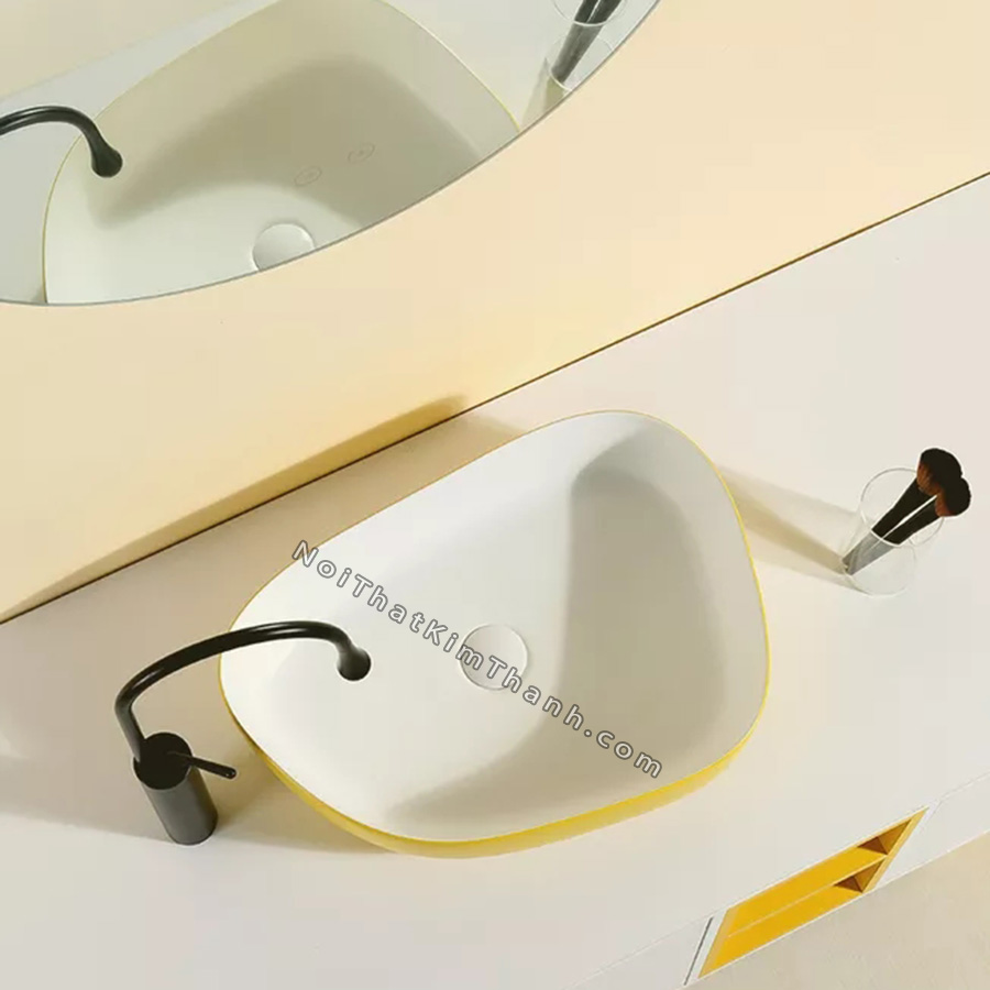 Lavabo đặt bàn hình tứ giác màu vàng chanh - LB146