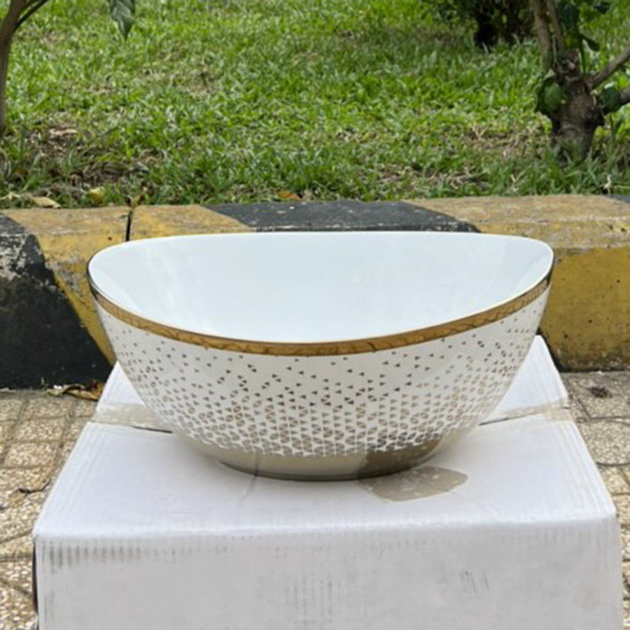 Lavabo đặt bàn hình tròn vành nghiêng viền vàng - LB148