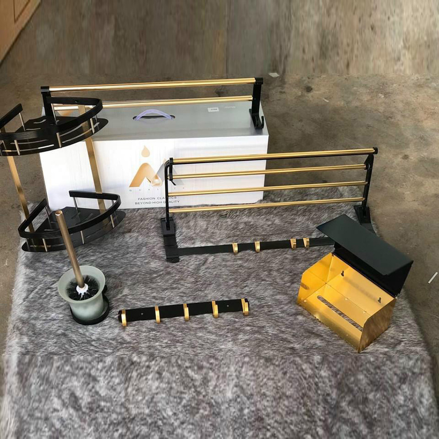 Combo 6 món màu vàng đen phụ kiện nhà tắm - D586