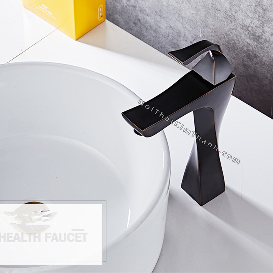 Vòi lavabo nóng lạnh vuông xoắn màu đen - SV88NL