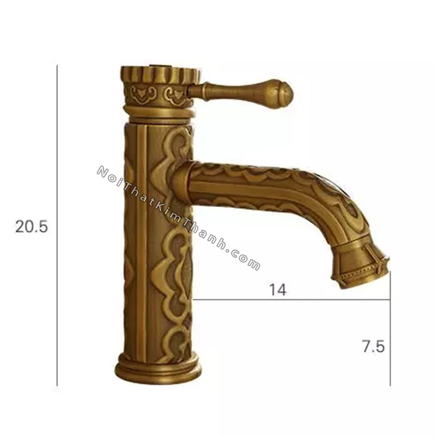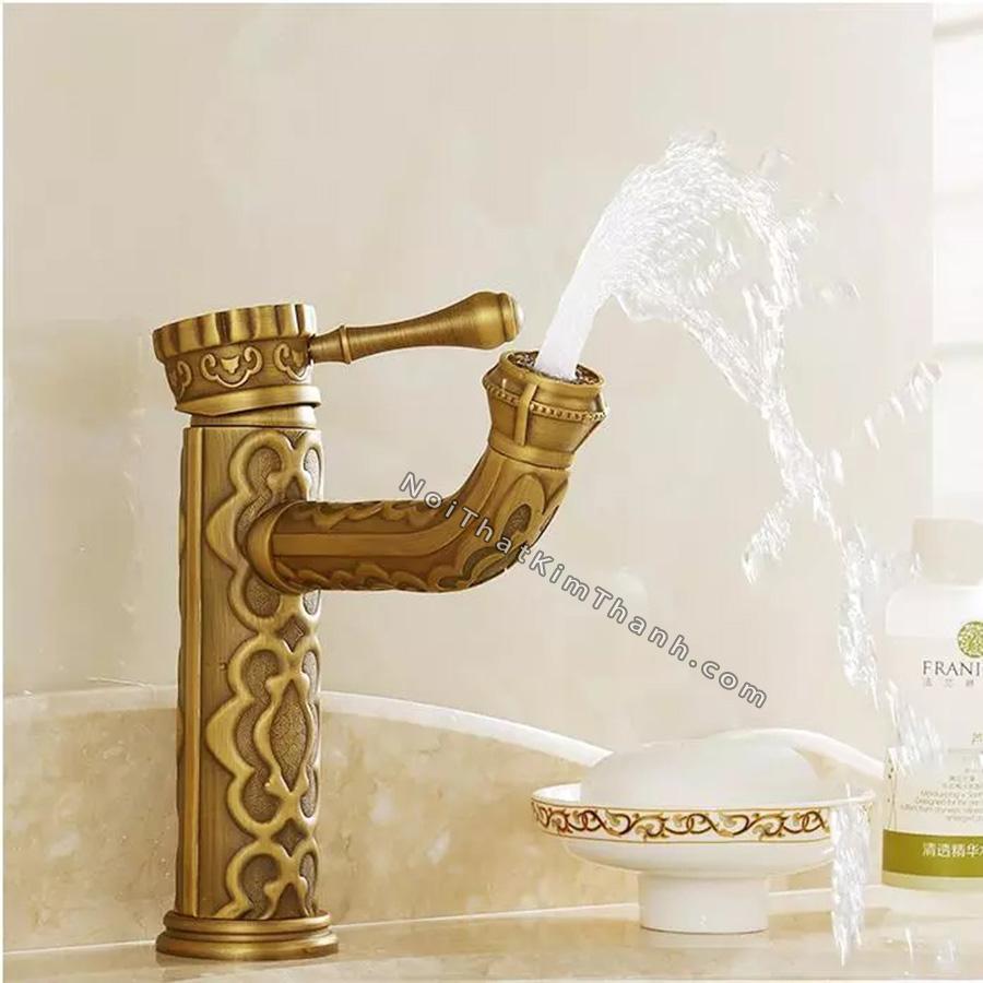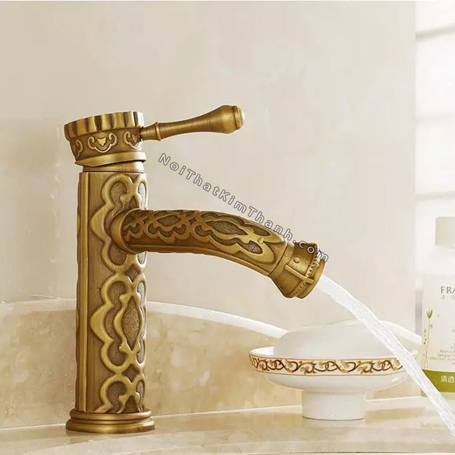 Vòi lavabo nóng lạnh màu vàng đồng hoa văn gân nổi - SV99NL