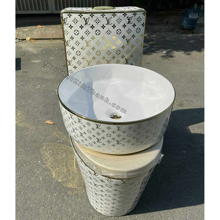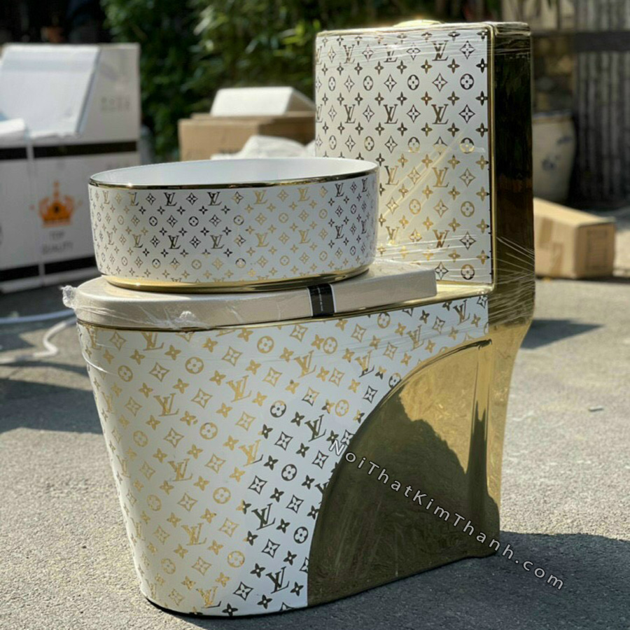 Bồn cầu liền khối màu trắng hoa văn LV - BC168