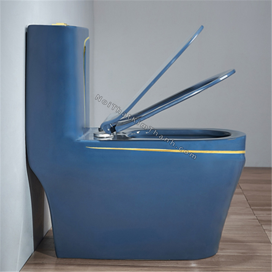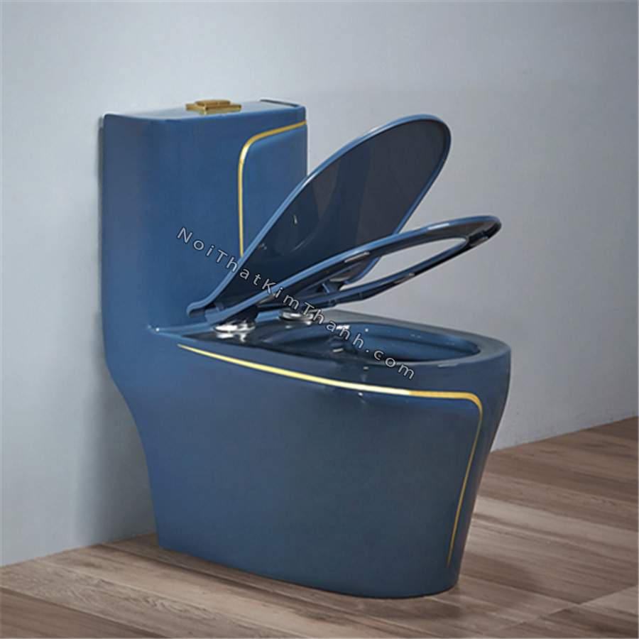 Bồn cầu liền khối màu xanh dương kẻ chỉ vàng - BC210