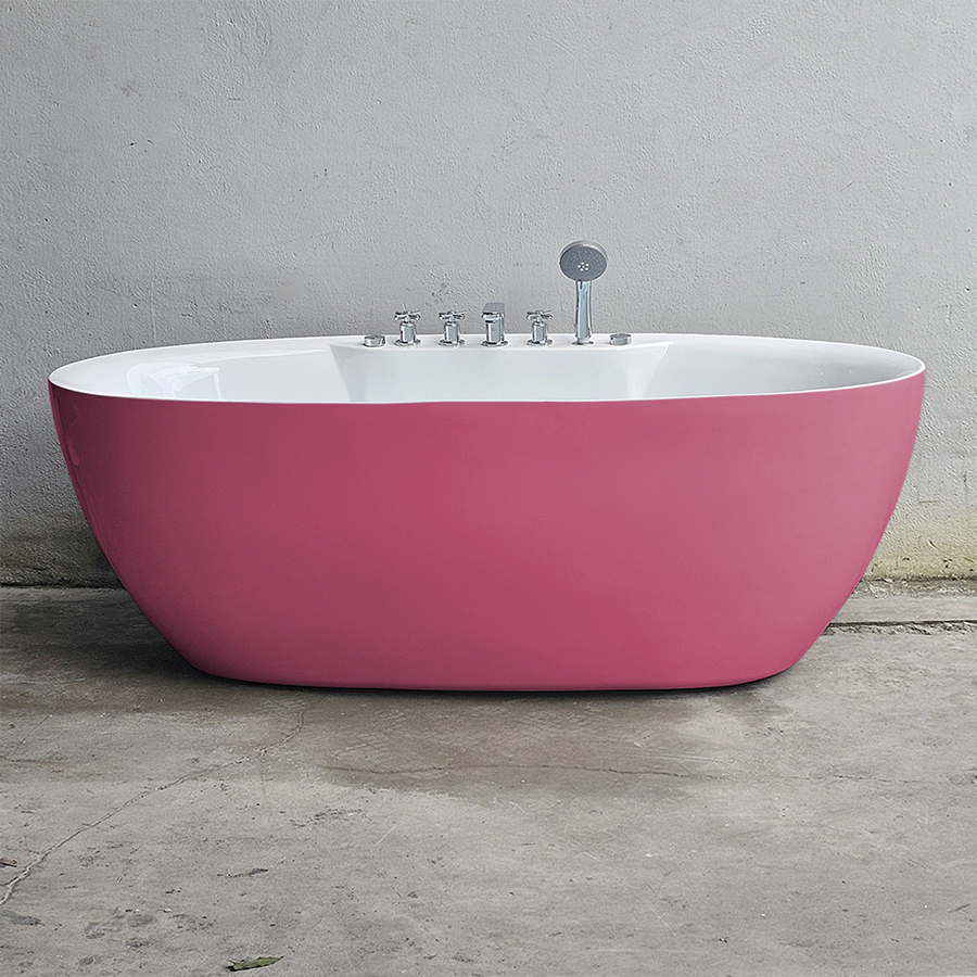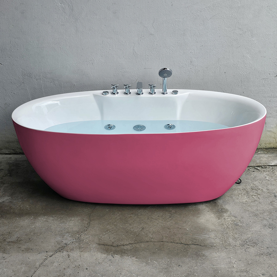 Bồn tắm oval màu hồng massage sen vòi - BT1352