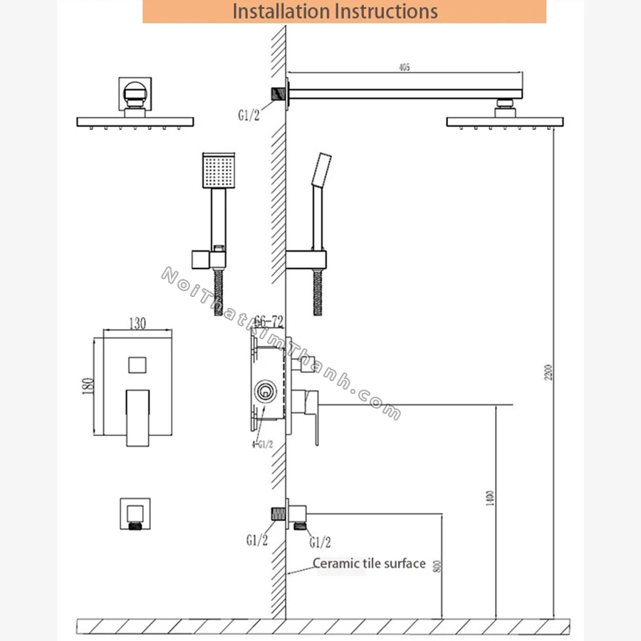 Sen tắm âm tường màu đen - SV164NL